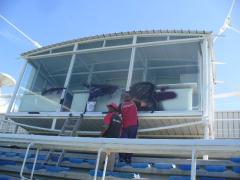 Graffiti Tags being removed from commentator glass booth by G.R.S