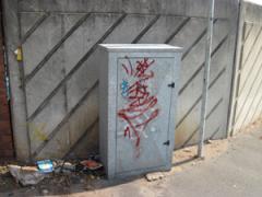 Graffiti Tags and white enamel painted sign removed from face brick by G.R.S