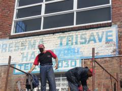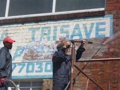 Painted signage being removed from face brick by G.R.S
