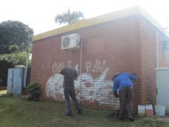 Graffiti Tags being removed from face brick by G.R.S